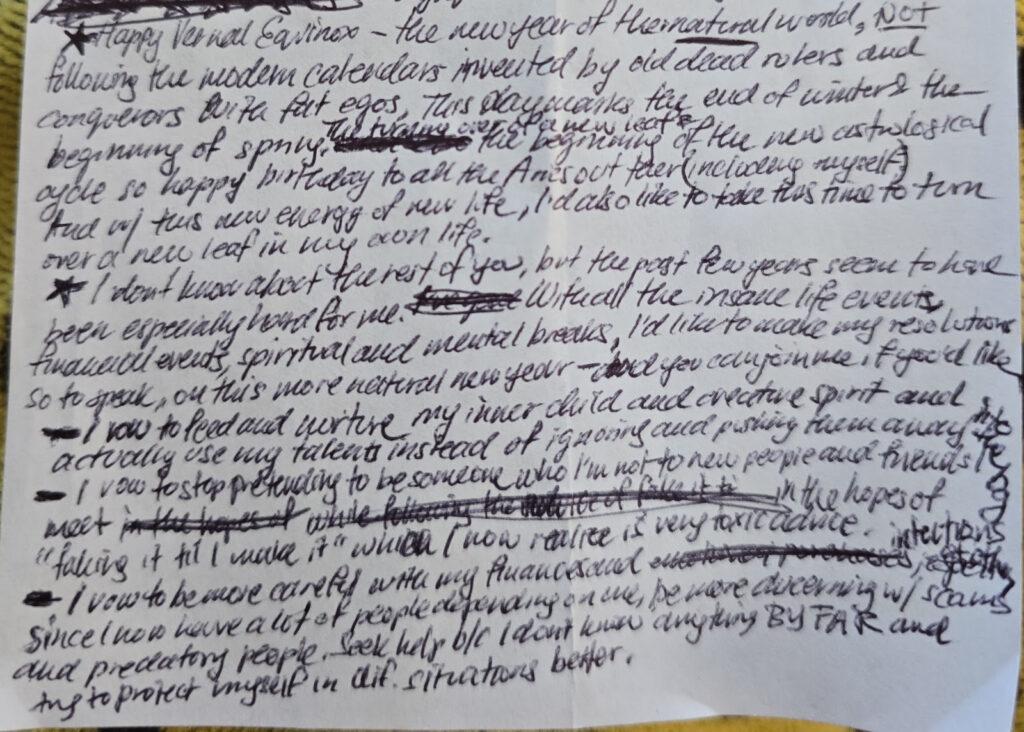 That even if I tried to upload something I’d worked hours on… and I’m not just talking art or prose, I’m talking sometimes even a comment on a forum, I would see mentions of “slop made by bot”. And I understand that some people just don’t know, or they simply try to sound smart… or maybe they’re rage-baiting bots themselves. But it all affected me. And I wish that it didn’t, but it all genuinely did, and made me want to hide more and more. How can I possibly prove that it was really me? So I knew this was the future, that it wasn’t going away, and I had to come to terms with it and start trying to find a slot I could personally fit into, while cheering on the new, amazing technological developments like everybody else. I won’t even go into the ecological footprint of it all and the damage that it does to the planet. But it was a bit of an existential crisis for me, I’m not going to lie. So I stopped making art for others, period. Actually, for myself for a while too… But it started to turn around recently. Now it’s just me and my project here, which I mostly make for myself so I can someday share it with others as an extension of myself. I guess that’s the niche I made myself fall into and how I started to rationalize everything. Because art is meant to be shared… that’s the entire purpose… but, according to my brain, it has to be more complicated now than just a picture or a poem. My rationalizations say you have to build an entire world, or it’s worthless and can easily be copied by slop. And I have to upload proof of it every step of the way, or nobody will believe me. Even the notes I uploaded earlier can be seen as the result of overthinking (and I’m definitely an overthinker), to the point where I feel the need to provide desperate proof that I’m human and my work was made by me. But who knows, perhaps soon even AI will be able to replicate this one day. Maybe it already can. I haven’t tried asking it to produce some messy notes like that before.